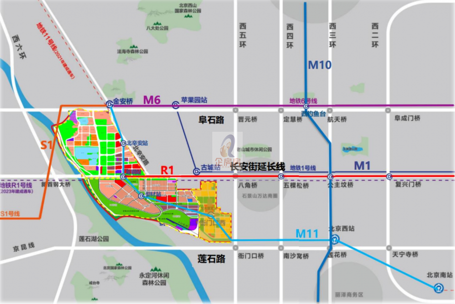 · 区位优势:地处长安街西延线南侧约600米,北临长安街、阜石路,南临莲石路,东临西五环路,西临古城南路、北辛安路,是京西区域的核心商务区。